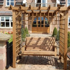 This arbour will be a place of peace and tranquility. Will comfortably sit 2 people. Made from premium quality pressure treated timber that will prevent rot for up to 20 years.