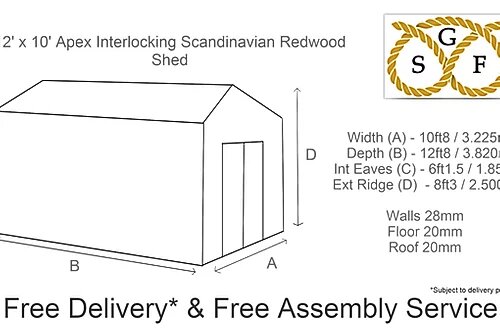 12′ x 10′ Apex Interlocking Scandinavian Redwood Shed